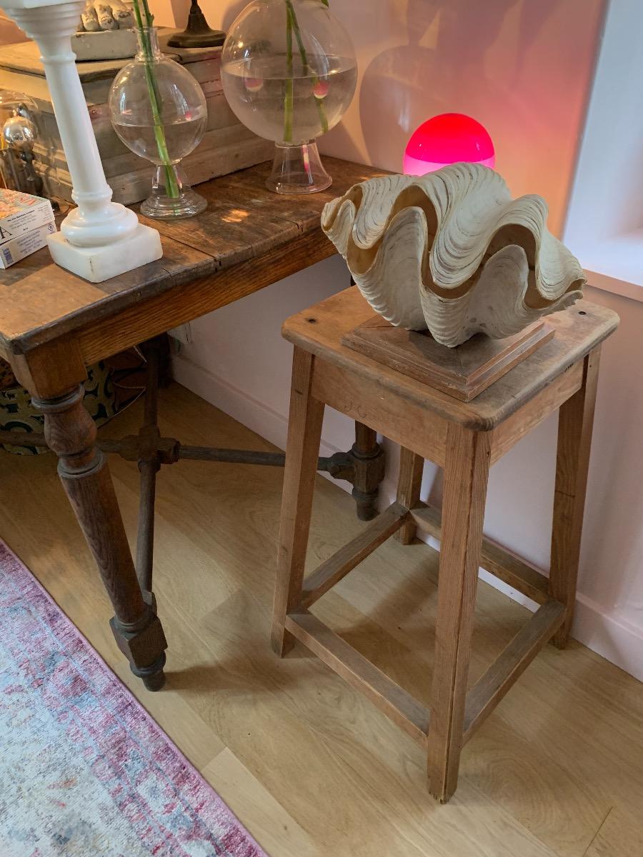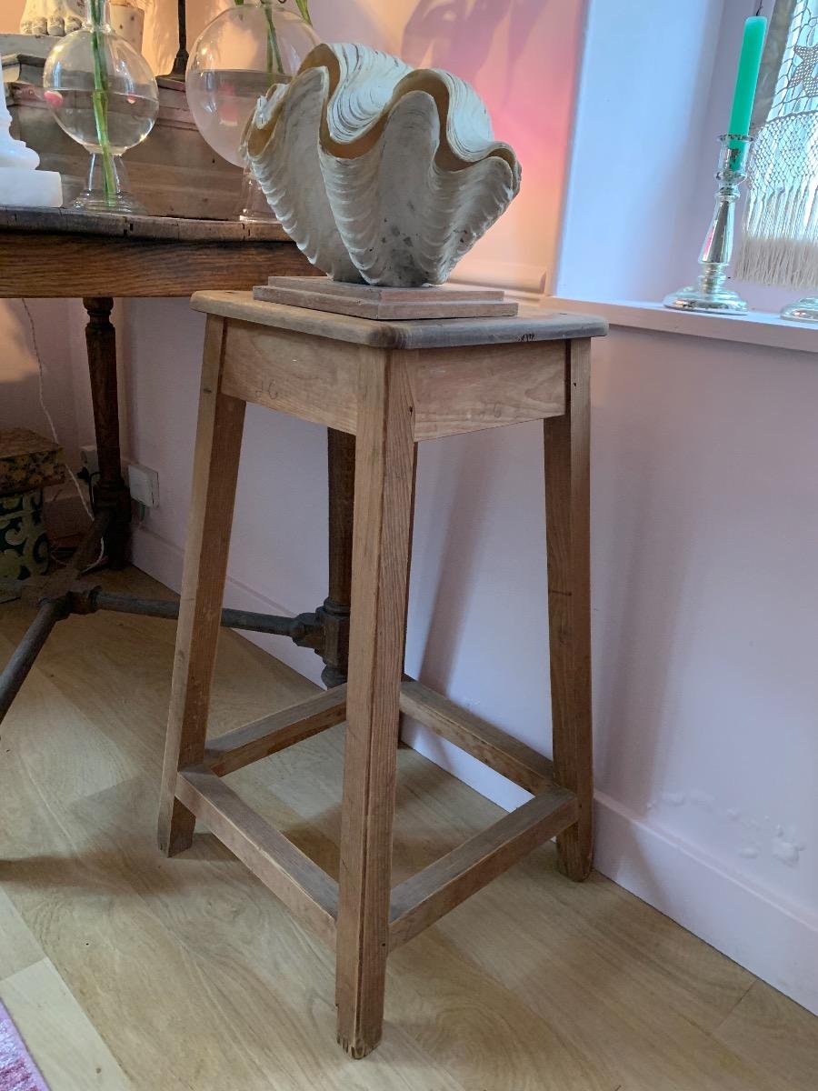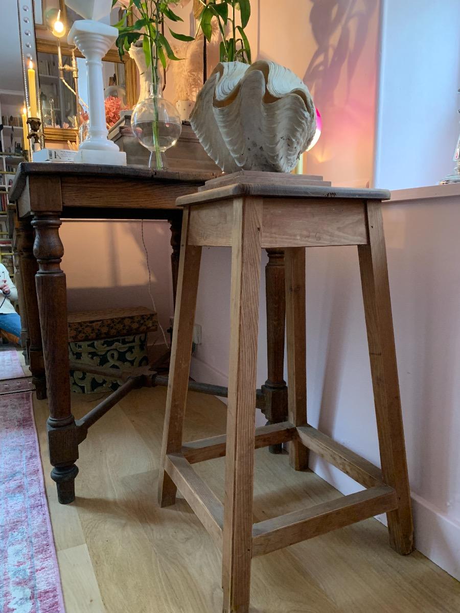 Sellette / tabouret haut. Hauteur 78 cm. Base 45 cm x 45 cm. Plateau 35 cm x 35 cm.