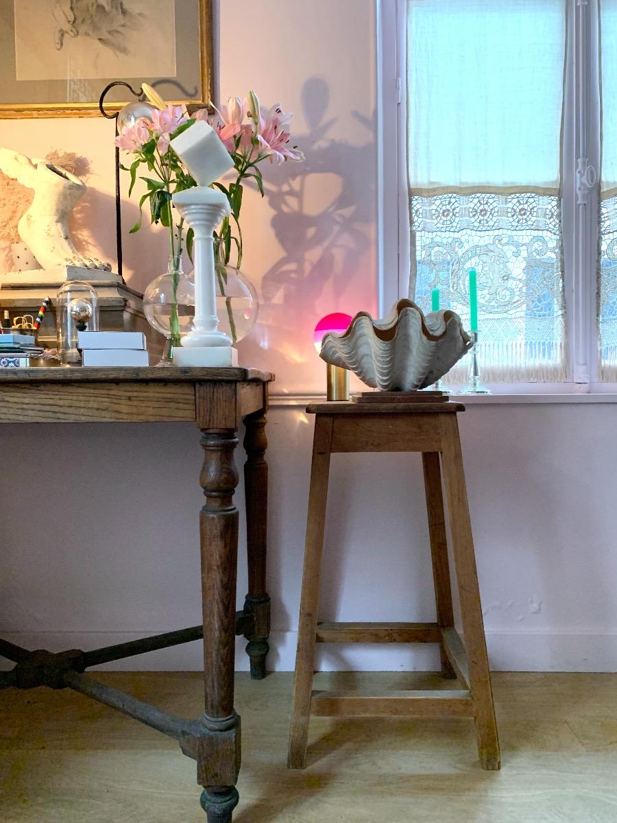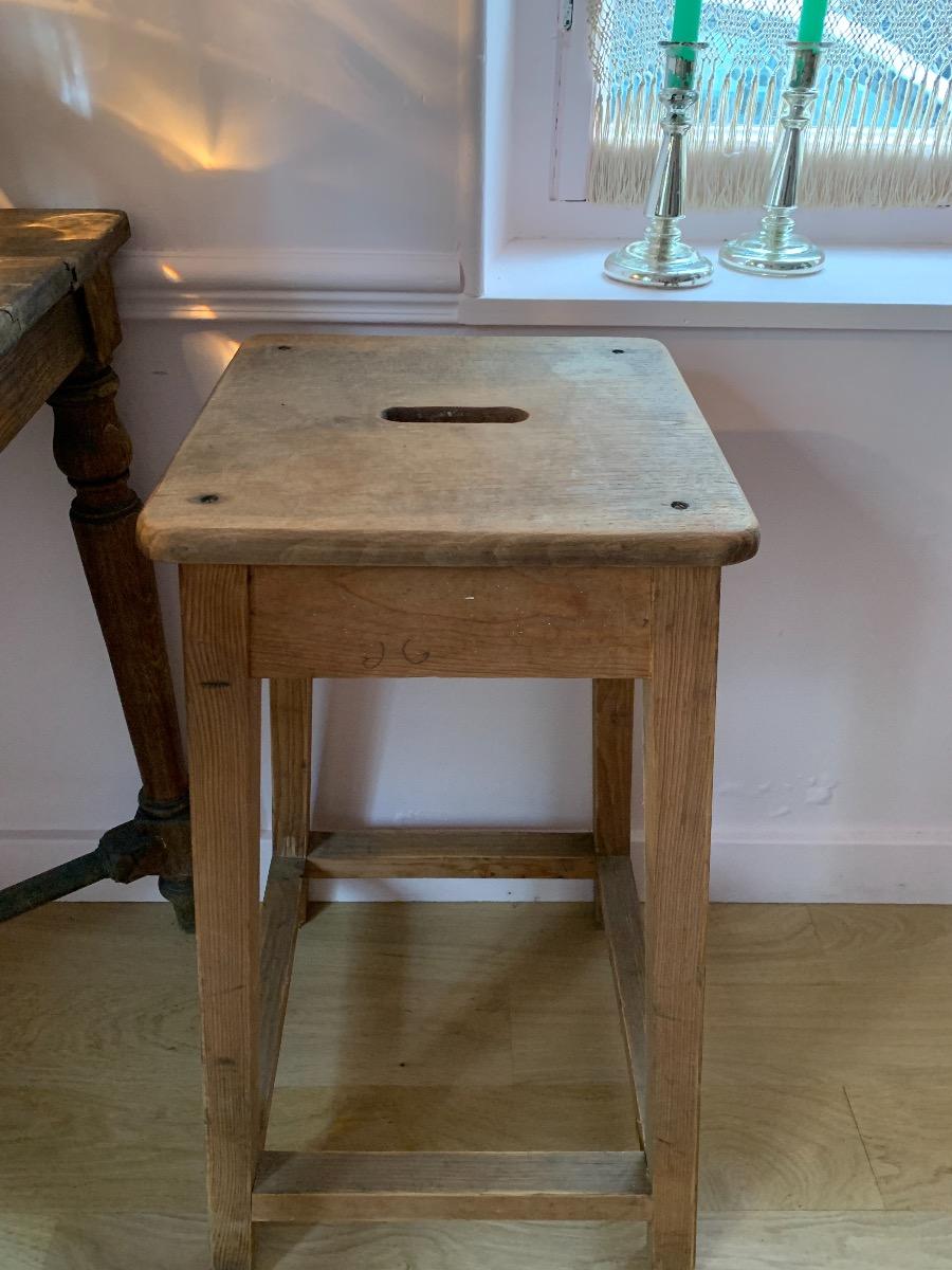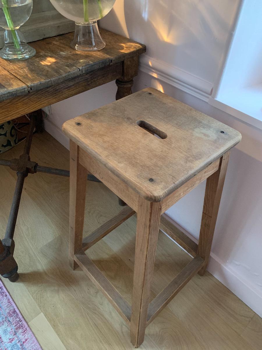 Sellette / tabouret haut. Hauteur 78 cm. Base 45 cm x 45 cm. Plateau 35 cm x 35 cm.